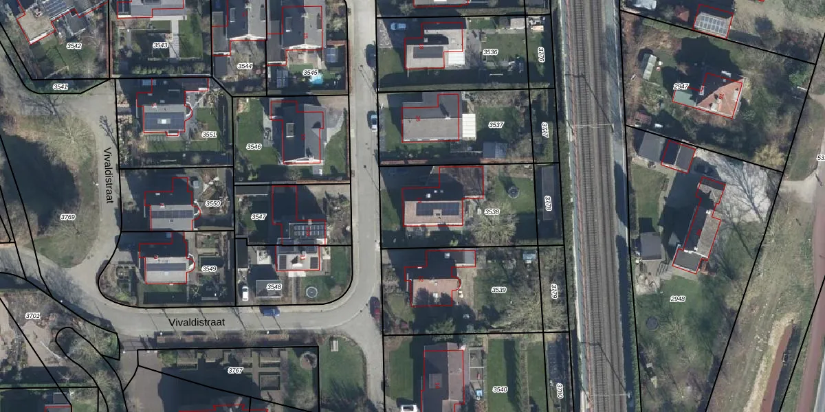 Het perceel waarop Vivaldistraat 14 staat heeft een oppervlakte van 762 m². Dit is een groot perceel. De perceeloppervlakte wordt geregistreerd door het Kadaster. Gedetailleerde informatie over de maten van dit perceel kunt u vinden in het rapport Kadastrale kaart met maatvoering van Vivaldistraat 14.