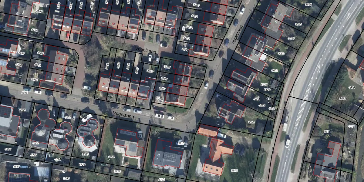 Het perceel waarop Vogelzang 18 staat heeft een oppervlakte van 128 m². Dit is een middelgroot perceel. De perceeloppervlakte wordt geregistreerd door het Kadaster. Gedetailleerde informatie over de maten van dit perceel kunt u vinden in het rapport Kadastrale kaart met maatvoering van Vogelzang 18.