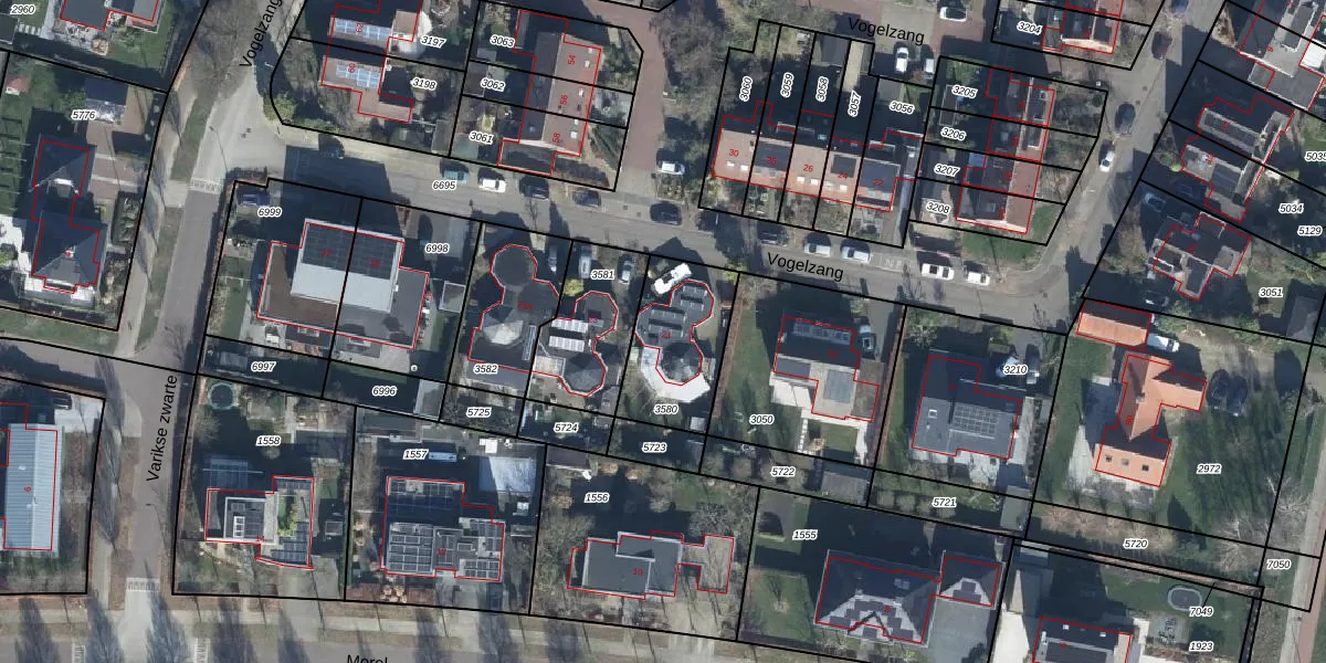 Het perceel waarop Vogelzang 21 staat heeft een oppervlakte van 350 m². Dit is een groot perceel. De perceeloppervlakte wordt geregistreerd door het Kadaster. Gedetailleerde informatie over de maten van dit perceel kunt u vinden in het rapport Kadastrale kaart met maatvoering van Vogelzang 21.