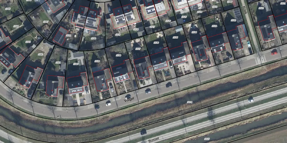 Gebruik de zoekbalk of klik op een perceel voor informatie over de adressen binnen dit perceel.