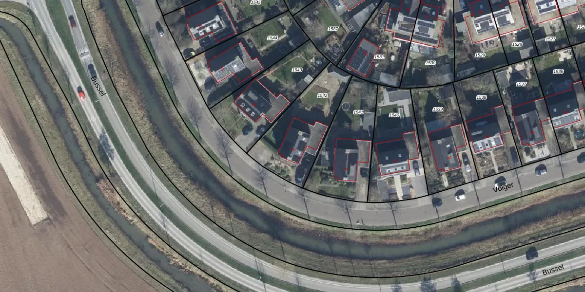 Gebruik de zoekbalk of klik op een perceel voor informatie over de adressen binnen dit perceel.