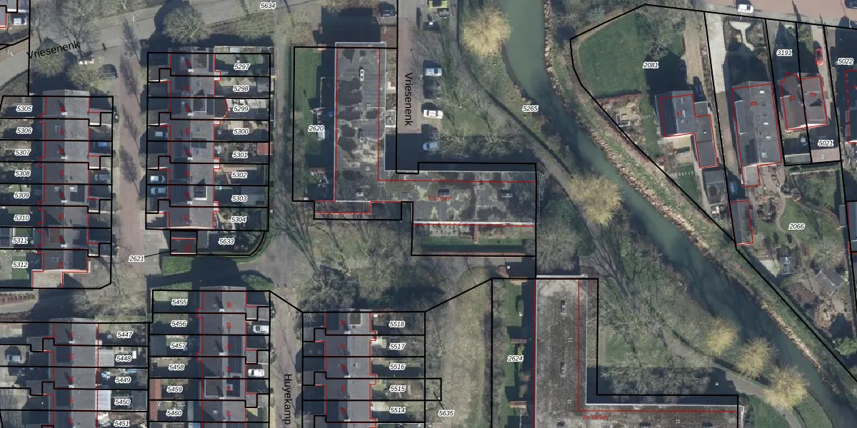 Vriesenenk 7-1eV is gelegen op kadastraal perceel ELS00K2620. Deze kadastrale aanduiding is uniek en wordt gebruikt door het Kadaster om eigendomsrechten en andere zakelijke rechten vast te leggen. Het perceel maakt onderdeel uit van de kadastrale gemeente Elst.