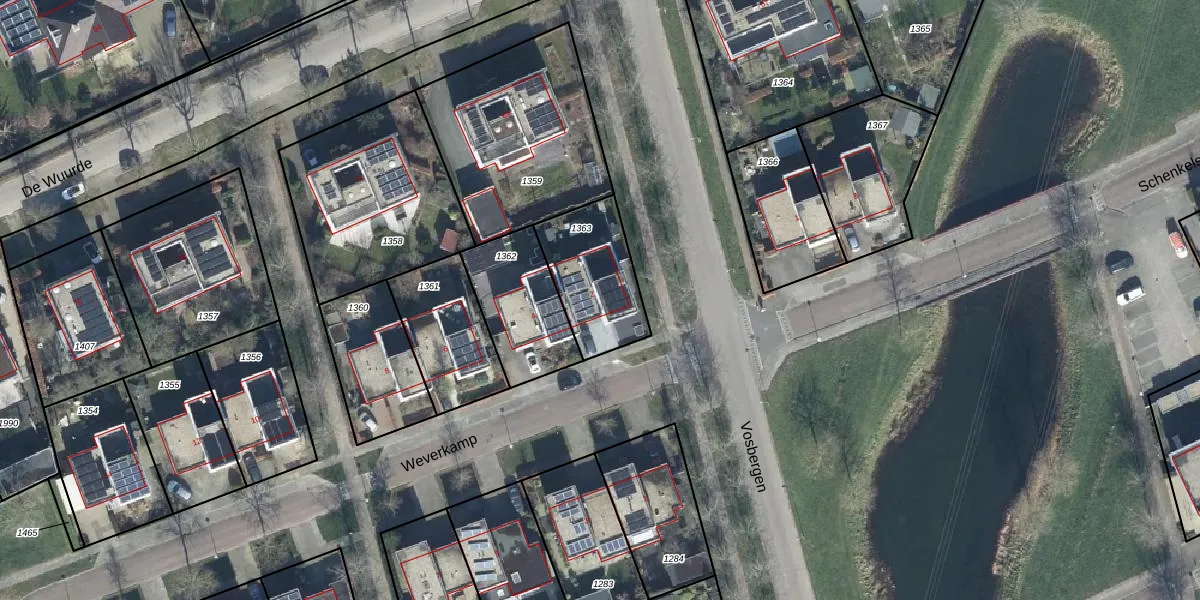 Het perceel waarop Weverkamp 2 staat heeft een oppervlakte van 321 m². Dit is een groot perceel. De perceeloppervlakte wordt geregistreerd door het Kadaster. Gedetailleerde informatie over de maten van dit perceel kunt u vinden in het rapport Kadastrale kaart met maatvoering van Weverkamp 2.