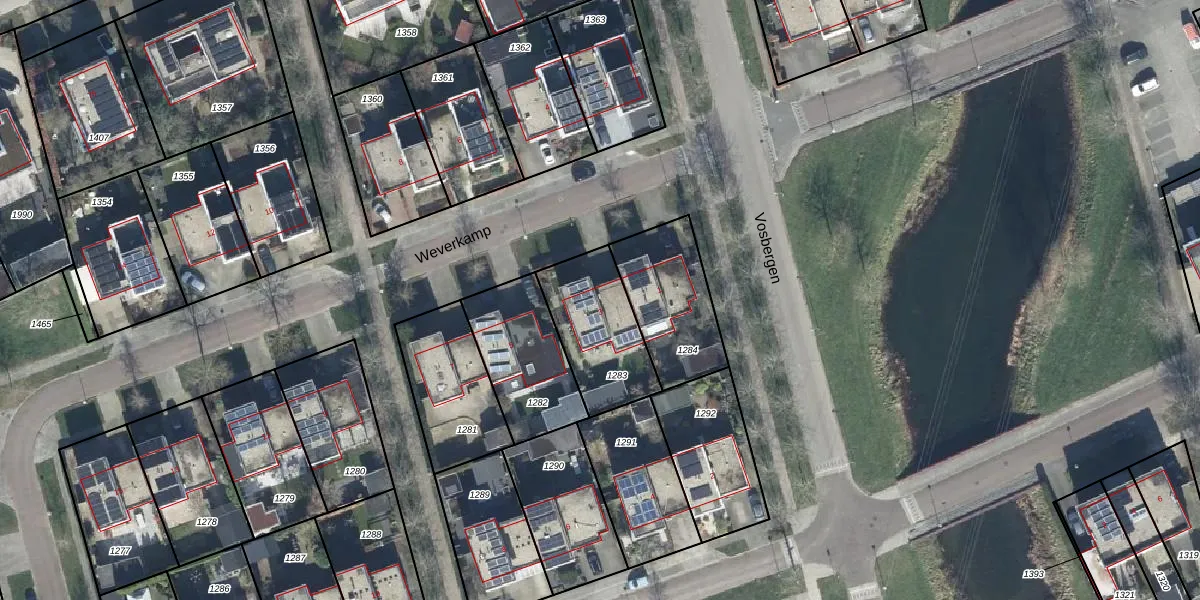 Gebruik de zoekbalk of klik op een perceel voor informatie over de adressen binnen dit perceel.