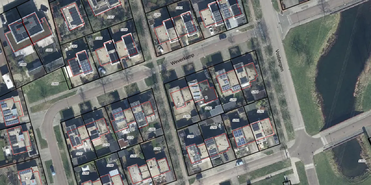 Gebruik de zoekbalk of klik op een perceel voor informatie over de adressen binnen dit perceel.