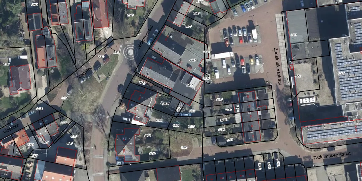 Het perceel waarop Willemsstraat 39-d staat heeft een oppervlakte van 540 m². Dit is een groot perceel. De perceeloppervlakte wordt geregistreerd door het Kadaster. Gedetailleerde informatie over de maten van dit perceel kunt u vinden in het rapport Kadastrale kaart met maatvoering van Willemsstraat 39-d.