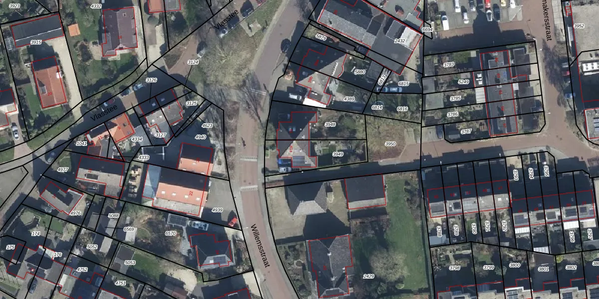Het perceel waarop Willemsstraat 41-a staat heeft een oppervlakte van 335 m². Dit is een groot perceel. De perceeloppervlakte wordt geregistreerd door het Kadaster. Gedetailleerde informatie over de maten van dit perceel kunt u vinden in het rapport Kadastrale kaart met maatvoering van Willemsstraat 41-a.
