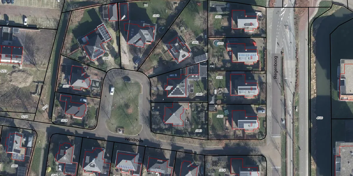 Het perceel waarop Windroos 10 staat heeft een oppervlakte van 616 m². Dit is een groot perceel. De perceeloppervlakte wordt geregistreerd door het Kadaster. Gedetailleerde informatie over de maten van dit perceel kunt u vinden in het rapport Kadastrale kaart met maatvoering van Windroos 10.