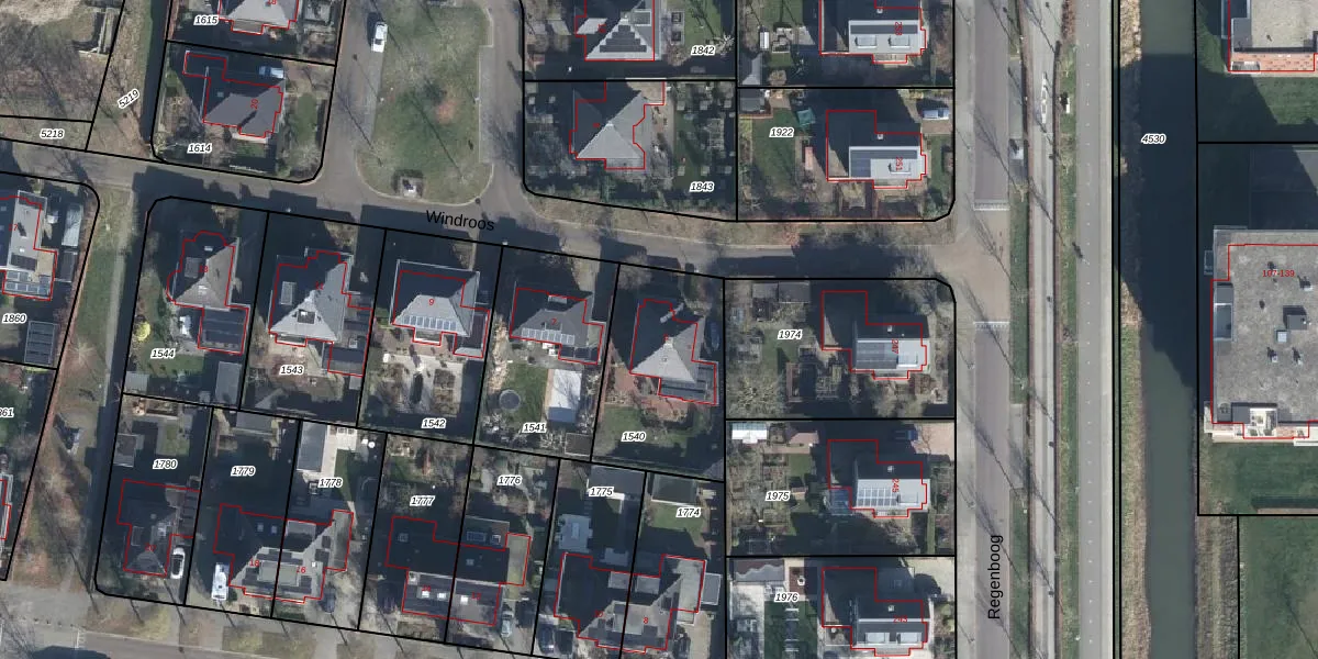 Gebruik de zoekbalk of klik op een perceel voor informatie over de adressen binnen dit perceel.