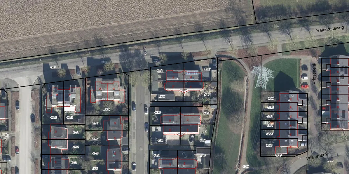 Het adres ligt op het perceel ELS00-K-4695, dat zich in de kadastrale gemeente Elst bevindt. Het perceel is 214 m² groot. Dat is kleiner dan de gemiddelde perceeloppervlakte in Elst, dat op 2924,12 m² ligt. Het kleinste perceel in de kadastrale gemeente is 0 m² groot. De grootste perceeloppervlakte is 35,2 ha. Dit is het enige adres dat aanwezig is op het perceel. De huidige grenzen van het perceel zijn digitaal in de Basisregistratie Kadaster (BRK) geregistreerd op 05-03-2001.