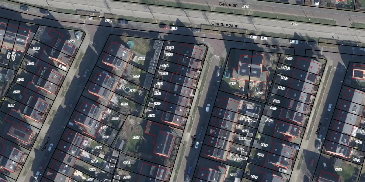 Gebruik de zoekbalk of klik op een perceel voor informatie over de adressen binnen dit perceel.