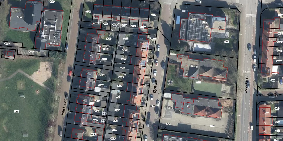 Gebruik de zoekbalk of klik op een perceel voor informatie over de adressen binnen dit perceel.