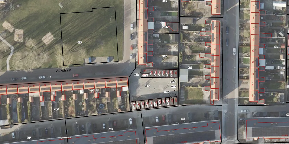 Het perceel waarop Aakstraat 28-T staat heeft een oppervlakte van 16 m². Dit is een klein perceel. De perceeloppervlakte wordt geregistreerd door het Kadaster. Gedetailleerde informatie over de maten van dit perceel kunt u vinden in het rapport Kadastrale kaart met maatvoering van Aakstraat 28-T.
