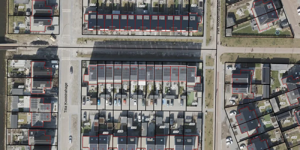 Het perceel waarop het adres ligt is NOP00-AX-1710. De afkorting 'NOP00' staat voor kadastrale gemeente Noordoostpolder. Het perceel is kleiner dan gemiddeld in Noordoostpolder. Het perceel is 177 m² groot, terwijl het gemiddelde ligt op 2,1 ha. Het kleinste perceel in de kadastrale gemeente is 0 m² groot. De grootste perceeloppervlakte is 47,42 km². Dit is het enige adres dat aanwezig is op het perceel. In de Basisregistratie Kadaster (BRK) werden de grenzen van het perceel geregistreerd op 12-12-2023.
