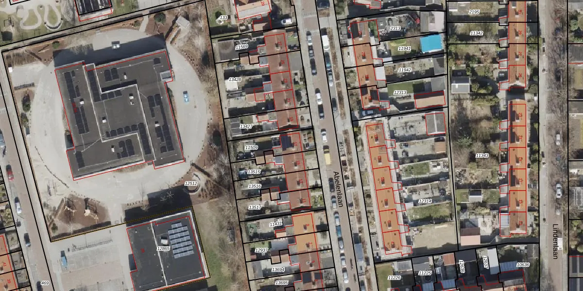 Gebruik de zoekbalk of klik op een perceel voor informatie over de adressen binnen dit perceel.