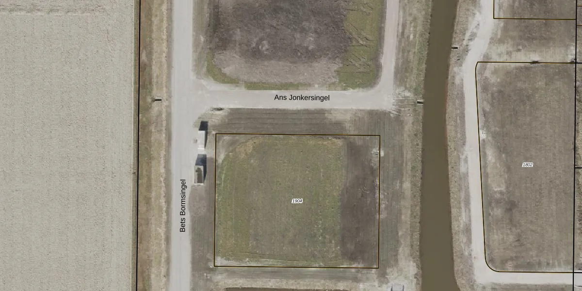 Het perceel waarop het adres ligt is NOP00-AX-1904. De afkorting 'NOP00' staat voor kadastrale gemeente Noordoostpolder. Het perceel is kleiner dan gemiddeld in Noordoostpolder. Het perceel is 2570 m² groot, terwijl het gemiddelde ligt op 2,1 ha. De grootste perceeloppervlakte in de kadastrale gemeente is 47,42 km². De kleinste oppervlakte bedraagt 0 m². Op het perceel liggen in totaal 24 adressen. De huidige grenzen van het perceel zijn digitaal in de Basisregistratie Kadaster (BRK) geregistreerd op 15-01-2024.