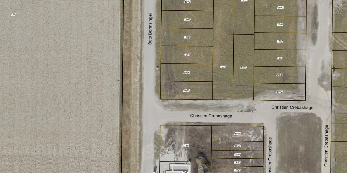 Het perceel waarop het adres ligt is NOP00-AX-1965. De afkorting 'NOP00' staat voor kadastrale gemeente Noordoostpolder. Het perceel is 313 m² groot. Dat is kleiner dan de gemiddelde perceeloppervlakte in Noordoostpolder, dat op 2,1 ha ligt. De grootste perceeloppervlakte in de kadastrale gemeente is 47,42 km². De kleinste oppervlakte bedraagt 0 m². Op het perceel bevinden zich geen andere adressen. In de Basisregistratie Kadaster (BRK) werden de grenzen van het perceel geregistreerd op 11-12-2024.