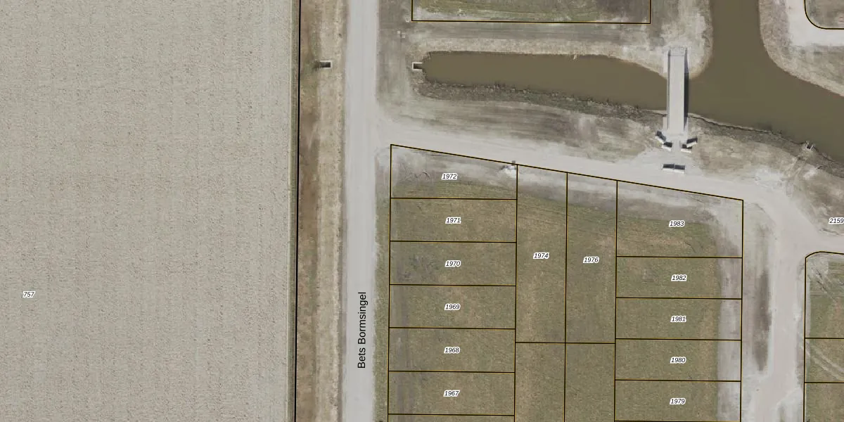 Het perceel waarop het adres ligt is NOP00-AX-1971. De afkorting 'NOP00' staat voor kadastrale gemeente Noordoostpolder. Het perceel is 305 m² groot. Dat is kleiner dan de gemiddelde perceeloppervlakte in Noordoostpolder, dat op 2,1 ha ligt. De grootste perceeloppervlakte in de kadastrale gemeente is 47,42 km². De kleinste oppervlakte bedraagt 0 m². Op het perceel bevinden zich geen andere adressen. In de Basisregistratie Kadaster (BRK) werden de grenzen van het perceel geregistreerd op 11-12-2024.