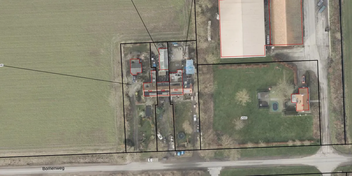 Het perceel waarop Bomenweg 15-C staat heeft een oppervlakte van 960 m². Dit is een groot perceel. De perceeloppervlakte wordt geregistreerd door het Kadaster. Gedetailleerde informatie over de maten van dit perceel kunt u vinden in het rapport Kadastrale kaart met maatvoering van Bomenweg 15-C.