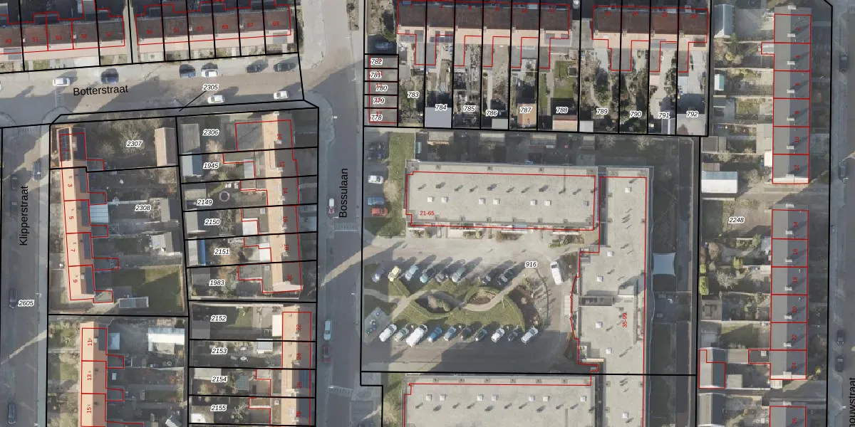 Bossulaan 21 is gelegen op kadastraal perceel NOP00AZ916. Deze kadastrale aanduiding is uniek en wordt gebruikt door het Kadaster om eigendomsrechten en andere zakelijke rechten vast te leggen. Het perceel maakt onderdeel uit van de kadastrale gemeente Noordoostpolder.