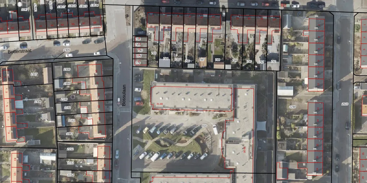 Bossulaan 57 is gelegen op kadastraal perceel NOP00AZ916. Deze kadastrale aanduiding is uniek en wordt gebruikt door het Kadaster om eigendomsrechten en andere zakelijke rechten vast te leggen. Het perceel maakt onderdeel uit van de kadastrale gemeente Noordoostpolder.