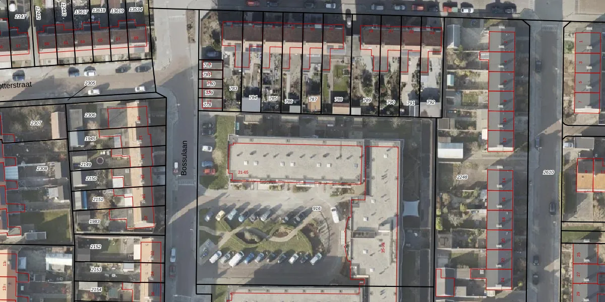 Bossulaan 59 is gelegen op kadastraal perceel NOP00AZ916. Deze kadastrale aanduiding is uniek en wordt gebruikt door het Kadaster om eigendomsrechten en andere zakelijke rechten vast te leggen. Het perceel maakt onderdeel uit van de kadastrale gemeente Noordoostpolder.