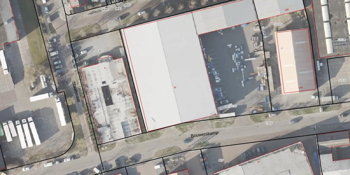 Het perceel waarop Bouwerskamp 16 staat heeft een oppervlakte van 4840 m². Dit is een zeer groot perceel. De perceeloppervlakte wordt geregistreerd door het Kadaster. Gedetailleerde informatie over de maten van dit perceel kunt u vinden in het rapport Kadastrale kaart met maatvoering van Bouwerskamp 16.