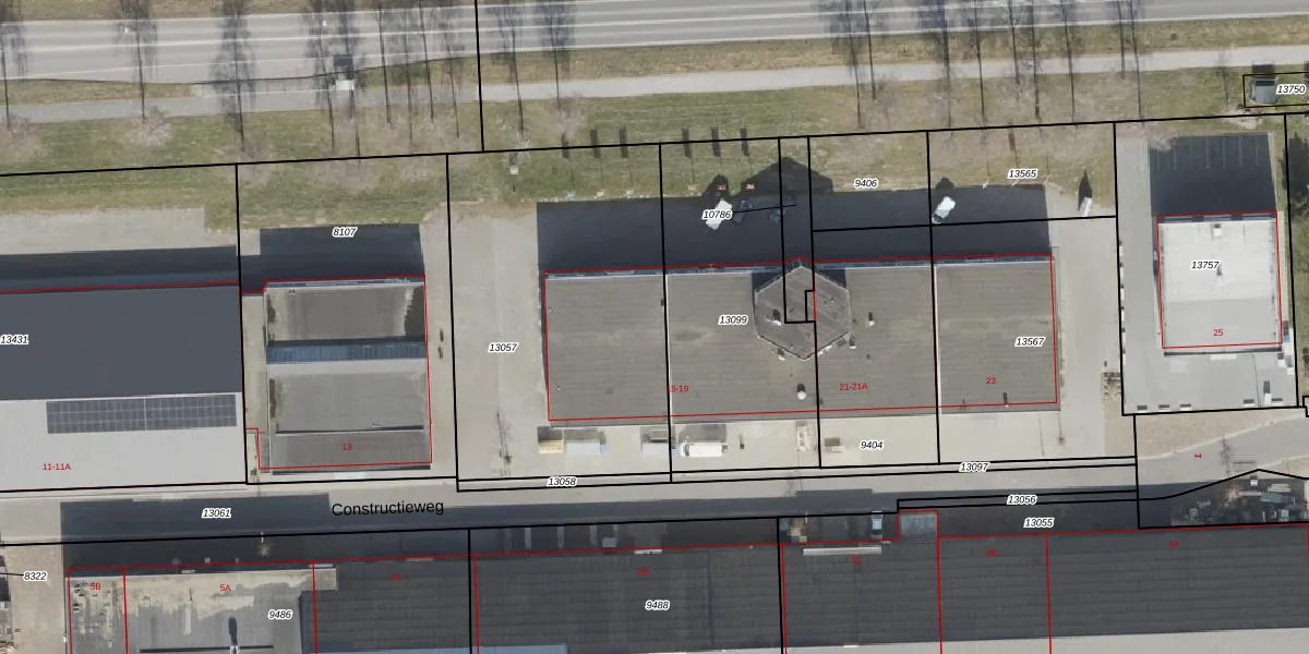 Het perceel waarop Constructieweg 17 staat heeft een oppervlakte van 1640 m². Dit is een zeer groot perceel. De perceeloppervlakte wordt geregistreerd door het Kadaster. Gedetailleerde informatie over de maten van dit perceel kunt u vinden in het rapport Kadastrale kaart met maatvoering van Constructieweg 17.