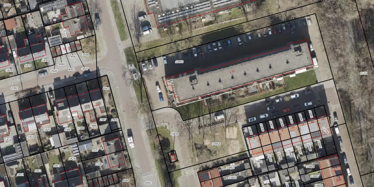 Het perceel waarop de Kaukasus 31 staat heeft een oppervlakte van 3455 m². Dit is een zeer groot perceel. De perceeloppervlakte wordt geregistreerd door het Kadaster. Gedetailleerde informatie over de maten van dit perceel kunt u vinden in het rapport Kadastrale kaart met maatvoering van de Kaukasus 31.