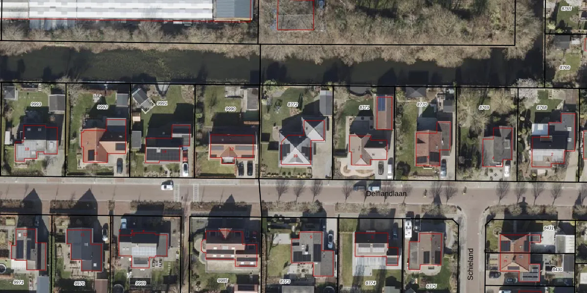 Delflandlaan 10 is gelegen op kadastraal perceel NOP00AZ8772. Deze kadastrale aanduiding is uniek en wordt gebruikt door het Kadaster om eigendomsrechten en andere zakelijke rechten vast te leggen. Het perceel maakt onderdeel uit van de kadastrale gemeente Noordoostpolder.