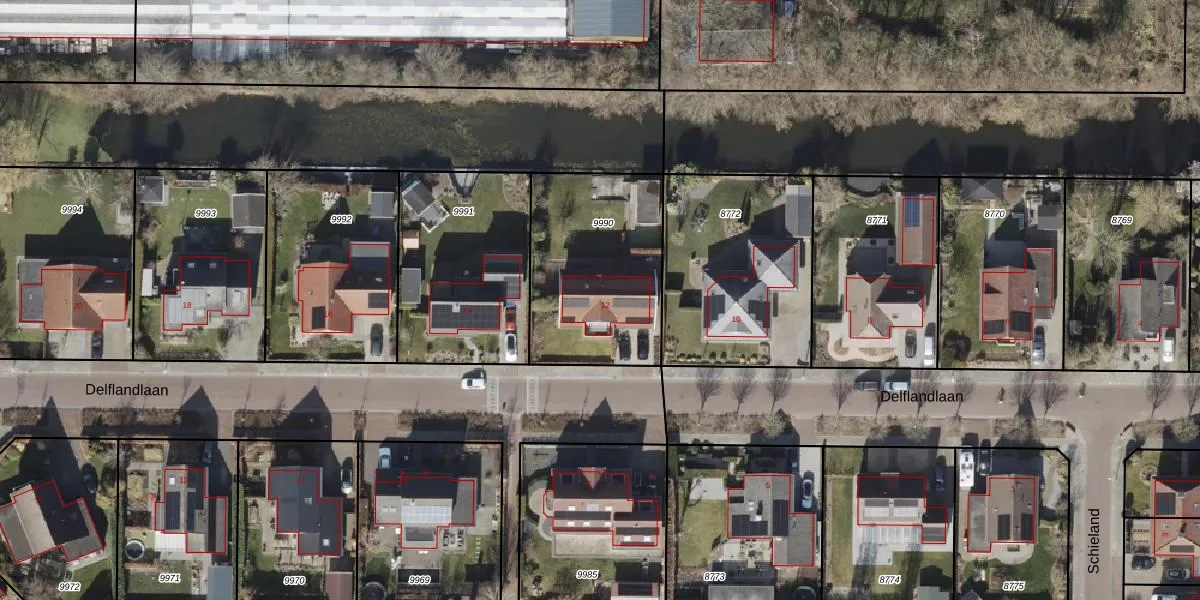Delflandlaan 12 is gelegen op kadastraal perceel NOP00AZ9990. Deze kadastrale aanduiding is uniek en wordt gebruikt door het Kadaster om eigendomsrechten en andere zakelijke rechten vast te leggen. Het perceel maakt onderdeel uit van de kadastrale gemeente Noordoostpolder.