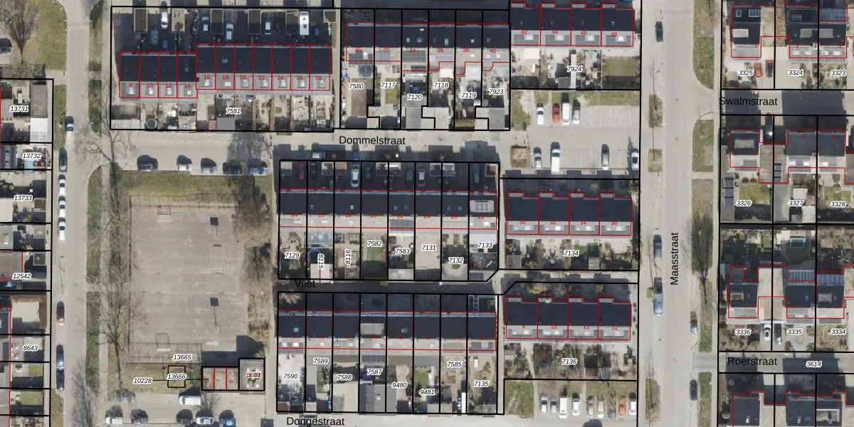 Het perceel waarop Dommelstraat 24 staat heeft een oppervlakte van 175 m². Dit is een middelgroot perceel. De perceeloppervlakte wordt geregistreerd door het Kadaster. Gedetailleerde informatie over de maten van dit perceel kunt u vinden in het rapport Kadastrale kaart met maatvoering van Dommelstraat 24.