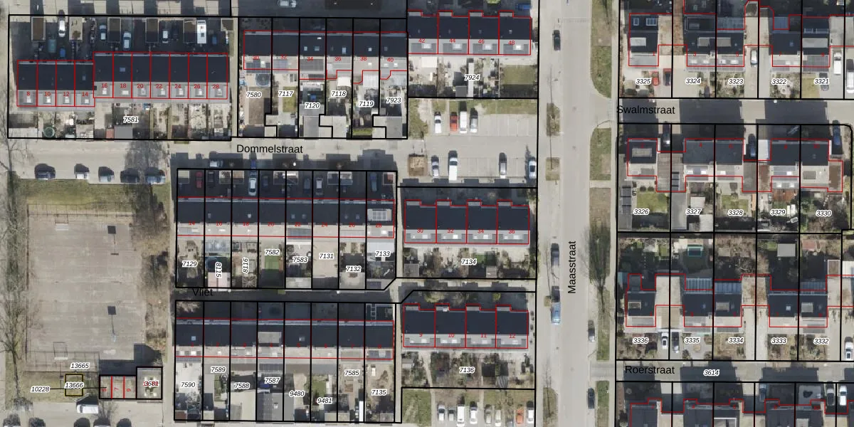 Het perceel waarop Dommelstraat 30 staat heeft een oppervlakte van 701 m². Dit is een groot perceel. De perceeloppervlakte wordt geregistreerd door het Kadaster. Gedetailleerde informatie over de maten van dit perceel kunt u vinden in het rapport Kadastrale kaart met maatvoering van Dommelstraat 30.
