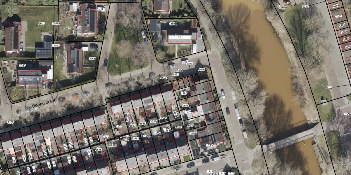 Het perceel waarop Donaustraat 44 staat heeft een oppervlakte van 21 m². Dit is een klein perceel. De perceeloppervlakte wordt geregistreerd door het Kadaster. Gedetailleerde informatie over de maten van dit perceel kunt u vinden in het rapport Kadastrale kaart met maatvoering van Donaustraat 44.