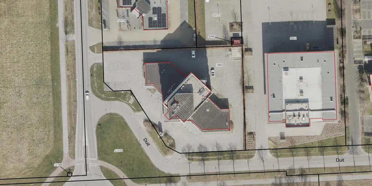 Het perceel waarop Duit 3-E staat heeft een oppervlakte van 3363 m². Dit is een zeer groot perceel. De perceeloppervlakte wordt geregistreerd door het Kadaster. Gedetailleerde informatie over de maten van dit perceel kunt u vinden in het rapport Kadastrale kaart met maatvoering van Duit 3-E.