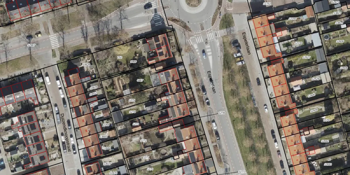 Espelerlaan 29 is gelegen op kadastraal perceel NOP00AZ1275. Deze kadastrale aanduiding is uniek en wordt gebruikt door het Kadaster om eigendomsrechten en andere zakelijke rechten vast te leggen. Het perceel maakt onderdeel uit van de kadastrale gemeente Noordoostpolder.