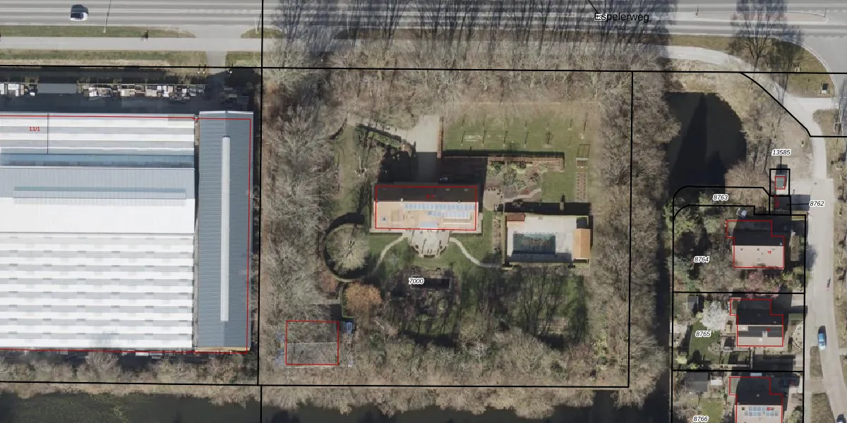 Het perceel waarop Espelerweg 9-2 staat heeft een oppervlakte van 6570 m². Dit is een zeer groot perceel. De perceeloppervlakte wordt geregistreerd door het Kadaster. Gedetailleerde informatie over de maten van dit perceel kunt u vinden in het rapport Kadastrale kaart met maatvoering van Espelerweg 9-2.