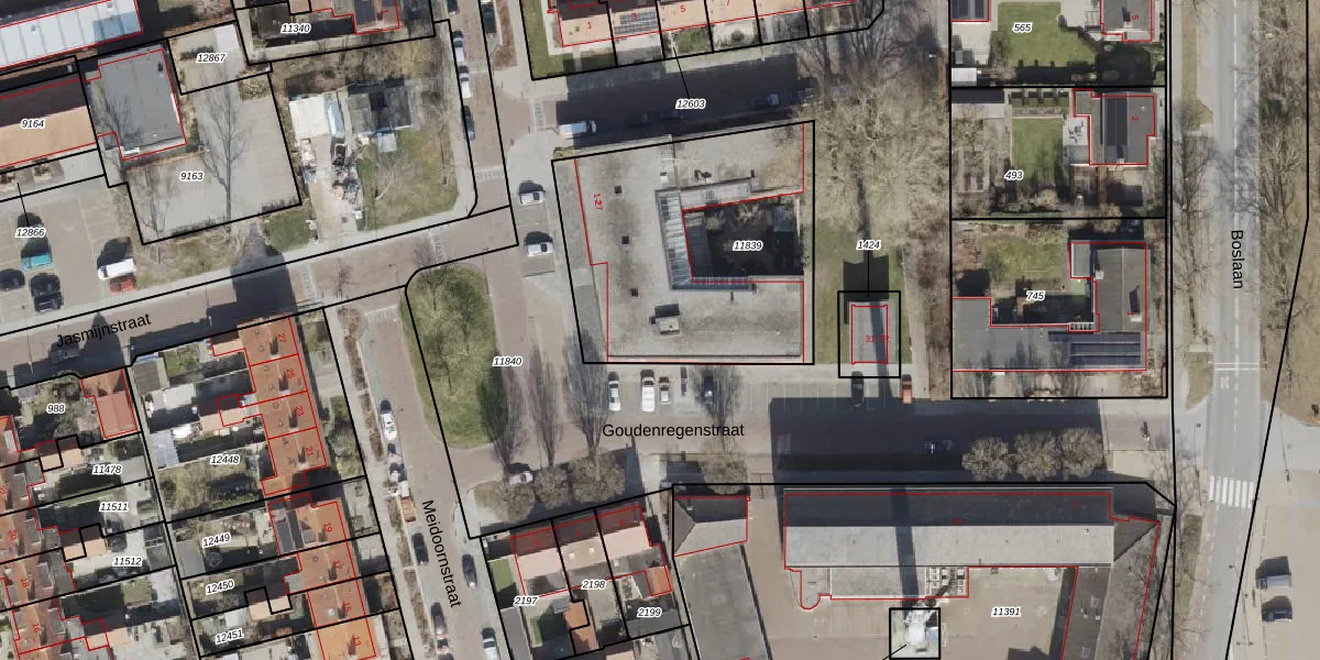 Het perceel waarop Goudenregenstraat 21 staat heeft een oppervlakte van 1265 m². Dit is een zeer groot perceel. De perceeloppervlakte wordt geregistreerd door het Kadaster. Gedetailleerde informatie over de maten van dit perceel kunt u vinden in het rapport Kadastrale kaart met maatvoering van Goudenregenstraat 21.