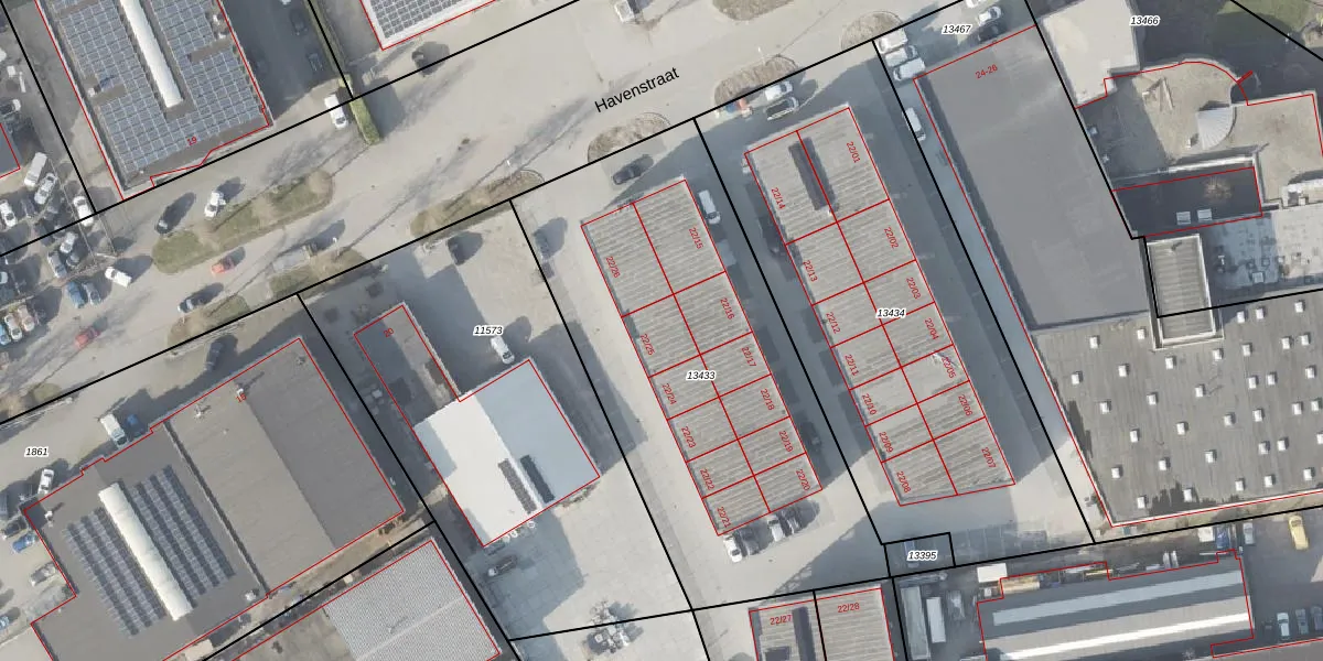 Havenstraat 22-25 is gelegen op kadastraal perceel NOP00AZ13433. Deze kadastrale aanduiding is uniek en wordt gebruikt door het Kadaster om eigendomsrechten en andere zakelijke rechten vast te leggen. Het perceel maakt onderdeel uit van de kadastrale gemeente Noordoostpolder.