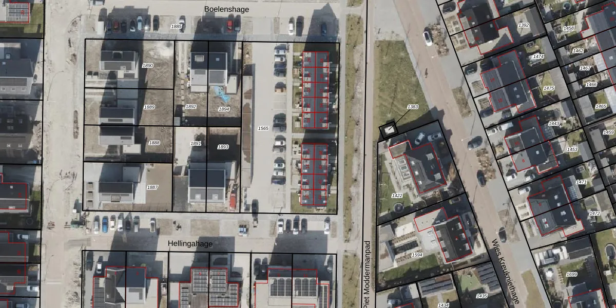 Hellingahage 16 is gelegen op kadastraal perceel NOP00AX1565. Deze kadastrale aanduiding is uniek en wordt gebruikt door het Kadaster om eigendomsrechten en andere zakelijke rechten vast te leggen. Het perceel maakt onderdeel uit van de kadastrale gemeente Noordoostpolder.