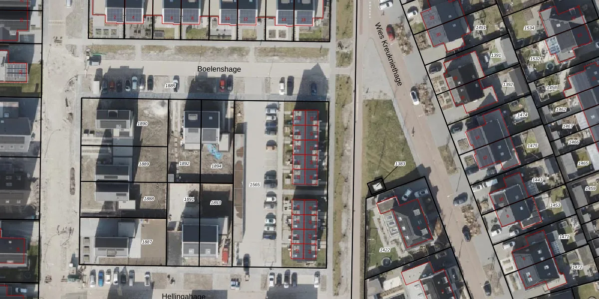 Het perceel waarop Hellingahage 22 staat heeft een oppervlakte van 1755 m². Dit is een zeer groot perceel. De perceeloppervlakte wordt geregistreerd door het Kadaster. Gedetailleerde informatie over de maten van dit perceel kunt u vinden in het rapport Kadastrale kaart met maatvoering van Hellingahage 22.