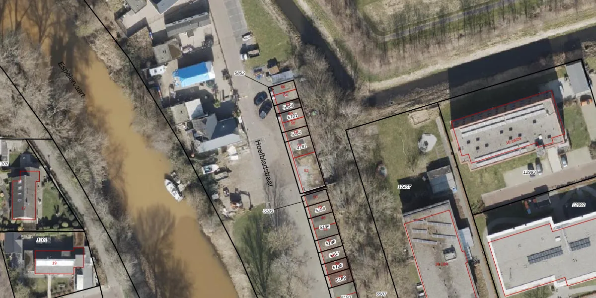 Het perceel waarop Hoefbladstraat 54 staat heeft een oppervlakte van 156 m². Dit is een middelgroot perceel. De perceeloppervlakte wordt geregistreerd door het Kadaster. Gedetailleerde informatie over de maten van dit perceel kunt u vinden in het rapport Kadastrale kaart met maatvoering van Hoefbladstraat 54.