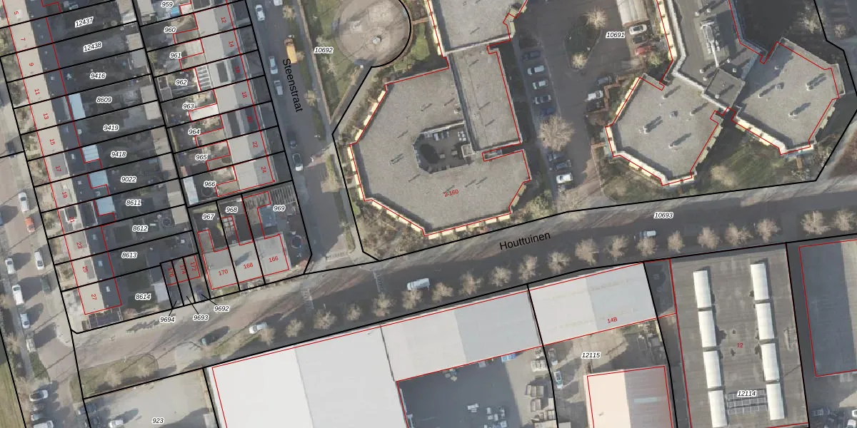 Het perceel waarop Houttuinen 108 staat heeft een oppervlakte van 1,1 ha. Dit is een zeer groot perceel. De perceeloppervlakte wordt geregistreerd door het Kadaster. Gedetailleerde informatie over de maten van dit perceel kunt u vinden in het rapport Kadastrale kaart met maatvoering van Houttuinen 108.