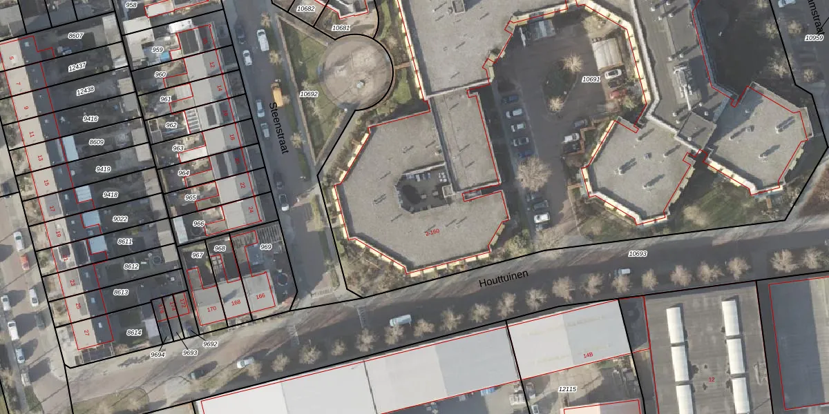 Het perceel waarop Houttuinen 118 staat heeft een oppervlakte van 1,1 ha. Dit is een zeer groot perceel. De perceeloppervlakte wordt geregistreerd door het Kadaster. Gedetailleerde informatie over de maten van dit perceel kunt u vinden in het rapport Kadastrale kaart met maatvoering van Houttuinen 118.
