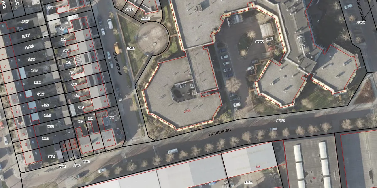 Het perceel waarop Houttuinen 122 staat heeft een oppervlakte van 1,1 ha. Dit is een zeer groot perceel. De perceeloppervlakte wordt geregistreerd door het Kadaster. Gedetailleerde informatie over de maten van dit perceel kunt u vinden in het rapport Kadastrale kaart met maatvoering van Houttuinen 122.
