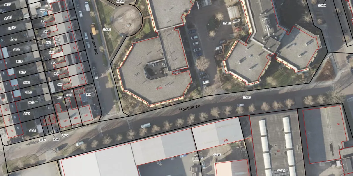 Het perceel waarop Houttuinen 134 staat heeft een oppervlakte van 1,1 ha. Dit is een zeer groot perceel. De perceeloppervlakte wordt geregistreerd door het Kadaster. Gedetailleerde informatie over de maten van dit perceel kunt u vinden in het rapport Kadastrale kaart met maatvoering van Houttuinen 134.