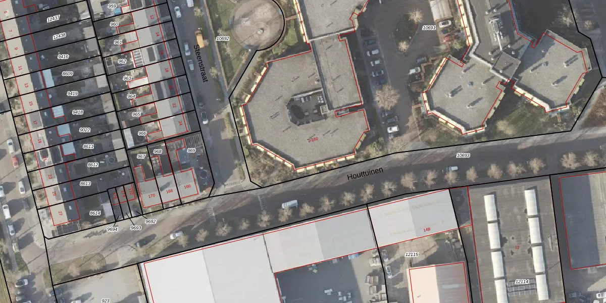Het perceel waarop Houttuinen 70 staat heeft een oppervlakte van 1,1 ha. Dit is een zeer groot perceel. De perceeloppervlakte wordt geregistreerd door het Kadaster. Gedetailleerde informatie over de maten van dit perceel kunt u vinden in het rapport Kadastrale kaart met maatvoering van Houttuinen 70.