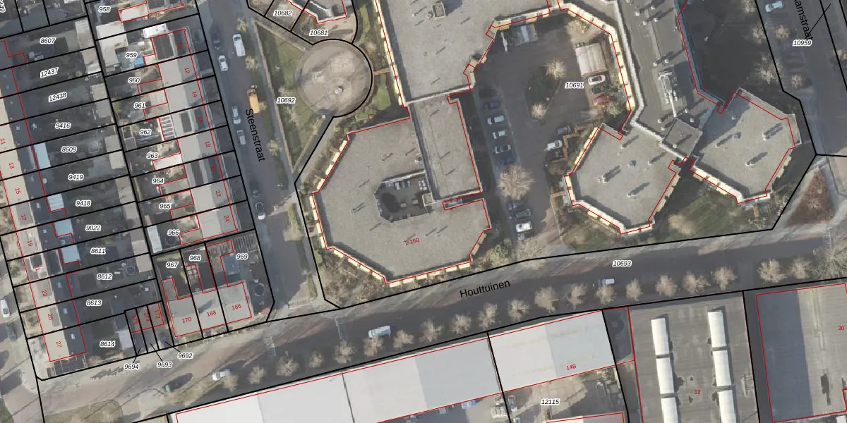 Het perceel waarop Houttuinen 84 staat heeft een oppervlakte van 1,1 ha. Dit is een zeer groot perceel. De perceeloppervlakte wordt geregistreerd door het Kadaster. Gedetailleerde informatie over de maten van dit perceel kunt u vinden in het rapport Kadastrale kaart met maatvoering van Houttuinen 84.