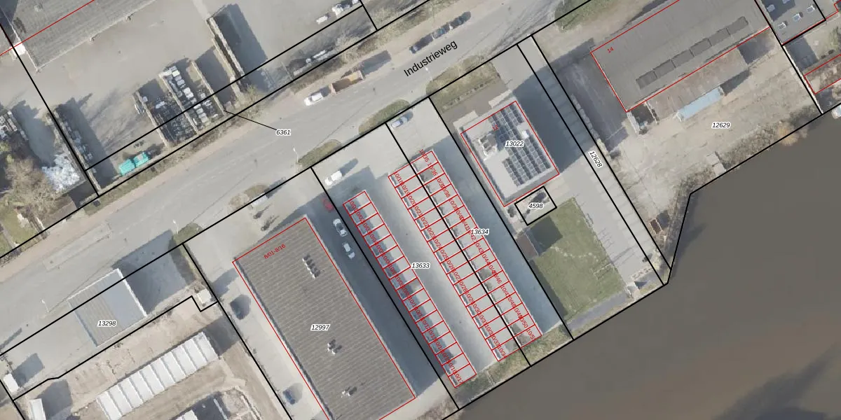 Industrieweg 10-21 is gelegen op kadastraal perceel NOP00AZ13633. Deze kadastrale aanduiding is uniek en wordt gebruikt door het Kadaster om eigendomsrechten en andere zakelijke rechten vast te leggen. Het perceel maakt onderdeel uit van de kadastrale gemeente Noordoostpolder.