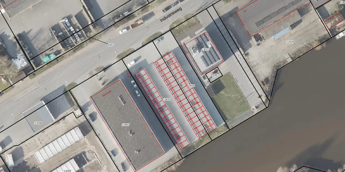 Industrieweg 10-23 is gelegen op kadastraal perceel NOP00AZ13633. Deze kadastrale aanduiding is uniek en wordt gebruikt door het Kadaster om eigendomsrechten en andere zakelijke rechten vast te leggen. Het perceel maakt onderdeel uit van de kadastrale gemeente Noordoostpolder.